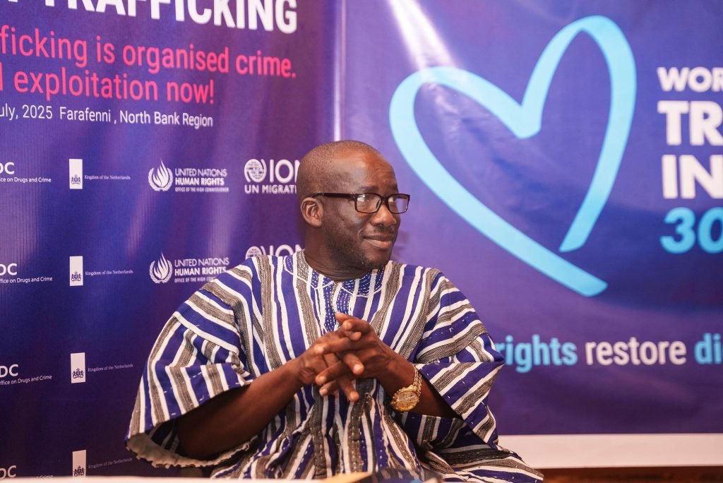 As part of steps to decentralize anti human Trafficking efforts, our engagement in Farafenni brought together law enforcement bodies, local government officials, religious and traditional leaders, community members, civil society organizations and survivors of human trafficking to discuss ways of improving coordination in order to yield better results. The theme for this years commemoration is Human Trafficking is organised crime. End exploitation now! #worlddayagaisnthumantrafficking #naatipgambia #unodcpromisproject